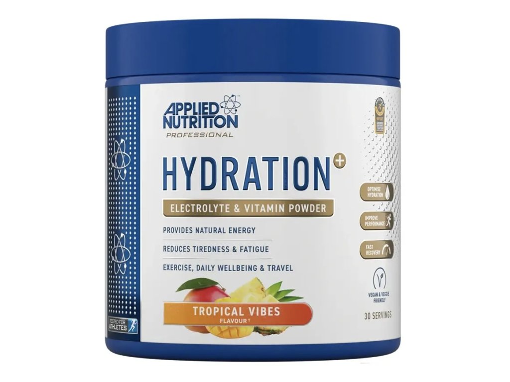 Applied Nutrition Hydration+ je práškový doplnok určený na podporu optimálnej hydratácie počas tréningu. Vďaka kombinácii elektrolytov, vitamínov a funkčných zložiek ako kokosová voda, Aquamin® a taurín pomáha udržať rovnováhu tekutín, znižuje únavu a podporuje výkon. Obsahuje sladidlá a je vhodný aj pre aktívnych športovcov.