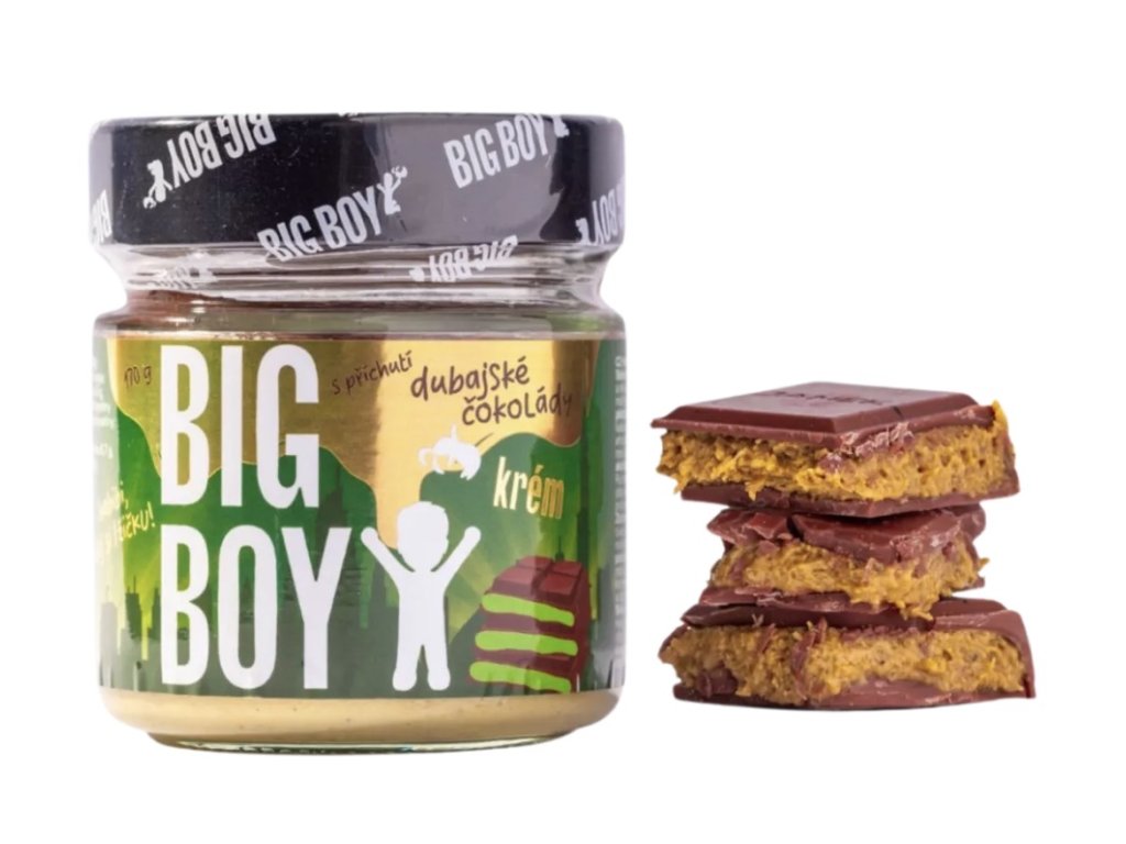 Pistáciový krém Dubajská čokoláda od Big Boy je limitovaná edícia luxusného krému s hodvábnou konzistenciou, chrumkavými guľôčkami a vrstvou lahodnej čokolády.