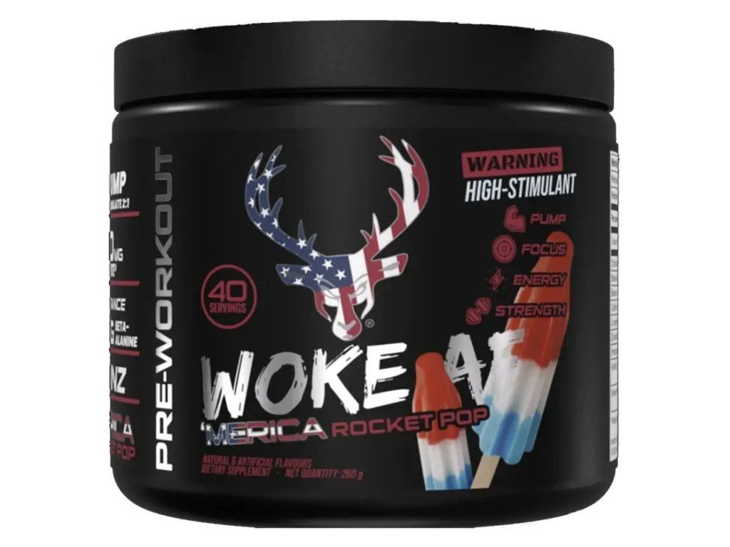 Bucked Up – Woke AF (40 serv) extrémne silný predtréningový stimulant pre pokročilých športovcov, ktorí chcú zažiť maximálne napumpovanie, energiu a sústredenie. Obsahuje kombináciu citrulín malátu, beta-alanínu, kofeínu, Zynamite®, Senactiv® a AstraGin® pre intenzívny výkon a lepšiu absorpciu.