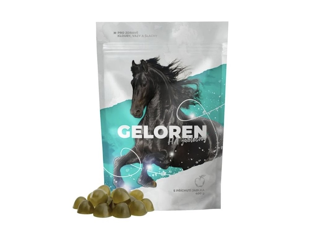 Contipro Pharma Geloren HA – prémiová kĺbová výživa vo forme chutných želé kociek s príchuťou višne alebo jablka. Prírodné a bezpečné doplnkové krmivo podporujúce zdravie kĺbov, chrupaviek, šliach a väzov aj pri zvýšenej záťaži alebo vo vyššom veku.