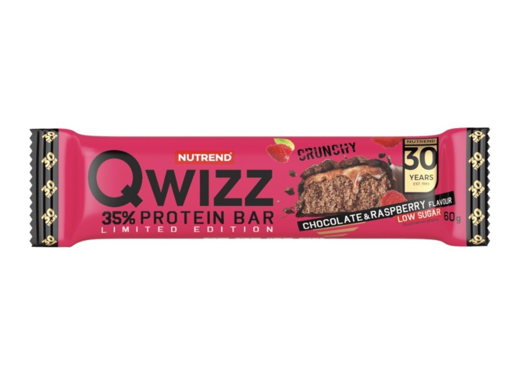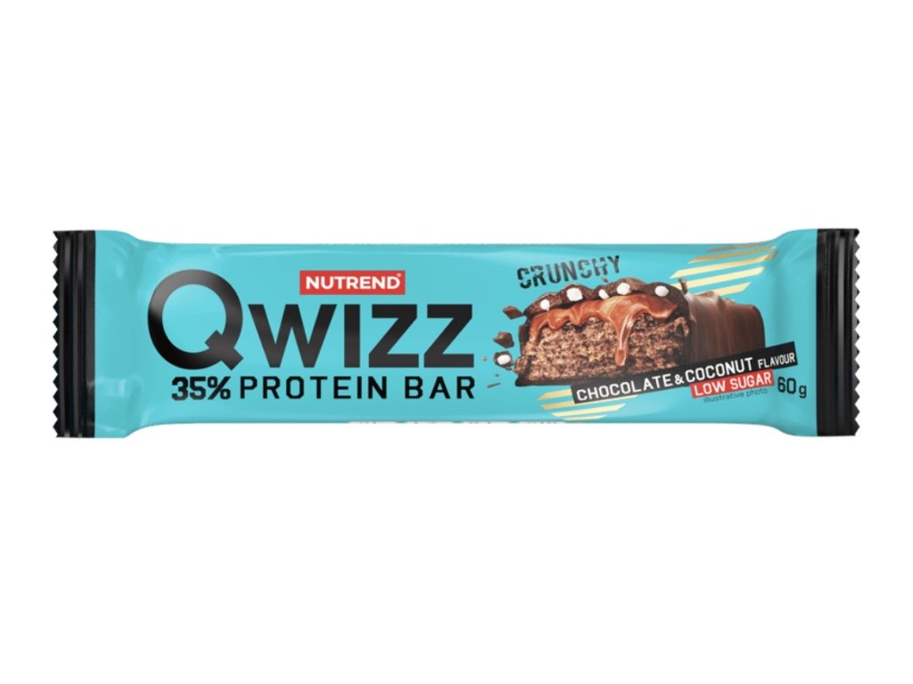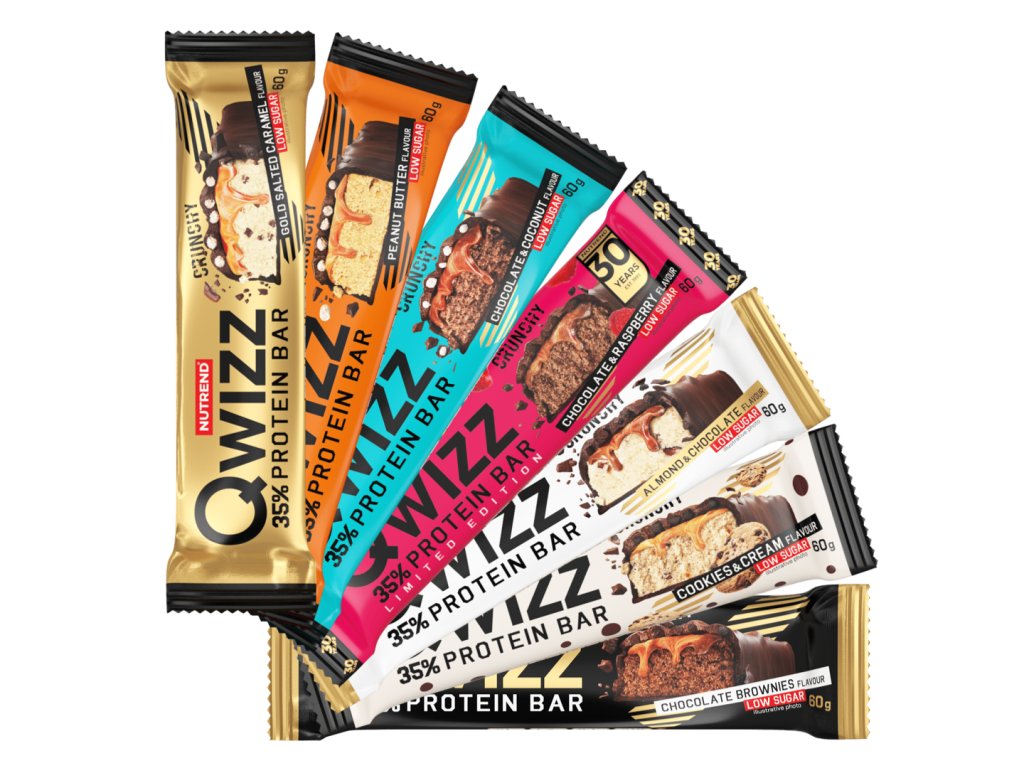 Qwizz Protein Bar 60 g je lahodná proteinová tyčinka s vysokým obsahem bílkovin a vlákniny, ideální jako rychlá svačina po tréninku nebo během dne.