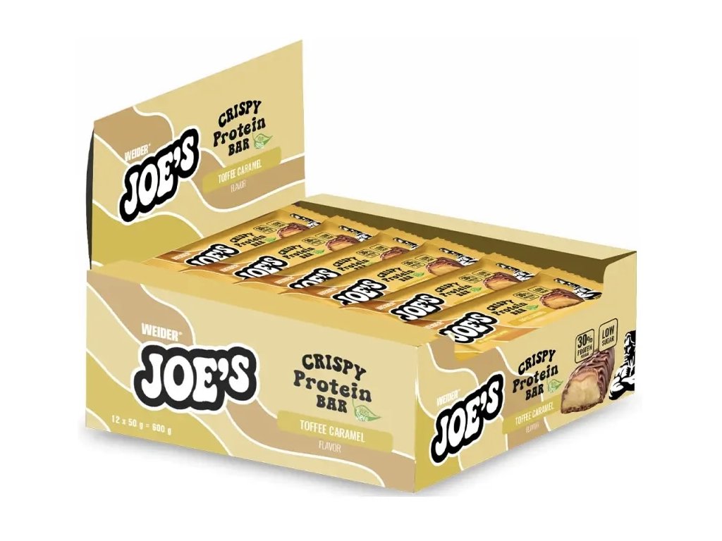 Joe's Crispy Protein Bar od Weider je lahodná křupavá proteinová tyčinka s vysokým obsahem bílkovin a nízkým obsahem cukru. Ideální jako rychlý snack nebo náhrada sladkosti po tréninku či během dne.