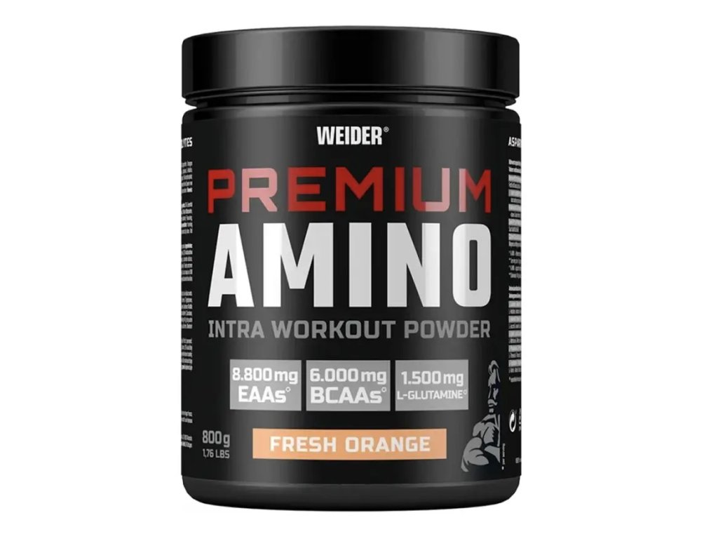 Weider Premium Amino je kvalitní tréninkový nápoj plný aminokyselin, komplexních sacharidů, elektrolytů a minerálů. Premium Amino rychle doplňuje energii, chrání a regeneruje svalovou hmotu již během tréninku, podporuje hydrataci a zabraňuje křečím i při dlouhotrvajících fyzických aktivitách. Na jednu dávku obsahuje až 8800 mg EAA (esenciálních aminokyselin), 6000 mg BCAA a 1500 mg glutaminu. Směs sacharidů je složena z různých typů maltodextrinů (kukuřičný, bramborový a voskový kukuřičný), které postupně uvolňují energii. Elektrolyty a minerály hydratují organismus a předcházejí tak vzniku svalových křečí.