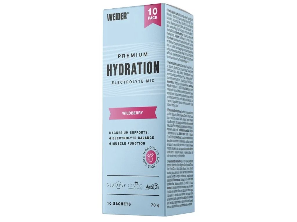 Ať už při sportu nebo kdykoliv během dne – náš prémiový hydratační prášek se svými cennými přísadami a potřebnými minerály je vždy dobrou volbou! Vzhledem k tomu, že zvýšená ztráta tekutin v důsledku silného pocení (teplo, intenzivní trénink) může vést ke snížení duševní a fyzické výkonnosti, je zvlášť důležité pro sportovce a fyzicky aktivní osoby zajistit dostatečný příjem tekutin. Náš nový Weider Premium Hydration Powder kombinuje přírodní prášek z kokosové vody s důležitými minerály, vysoce kvalitními glutamin-alaninovými peptidy Glutapep® a rostlinnými extrakty AstraGin® zvyšujícími absorpci.