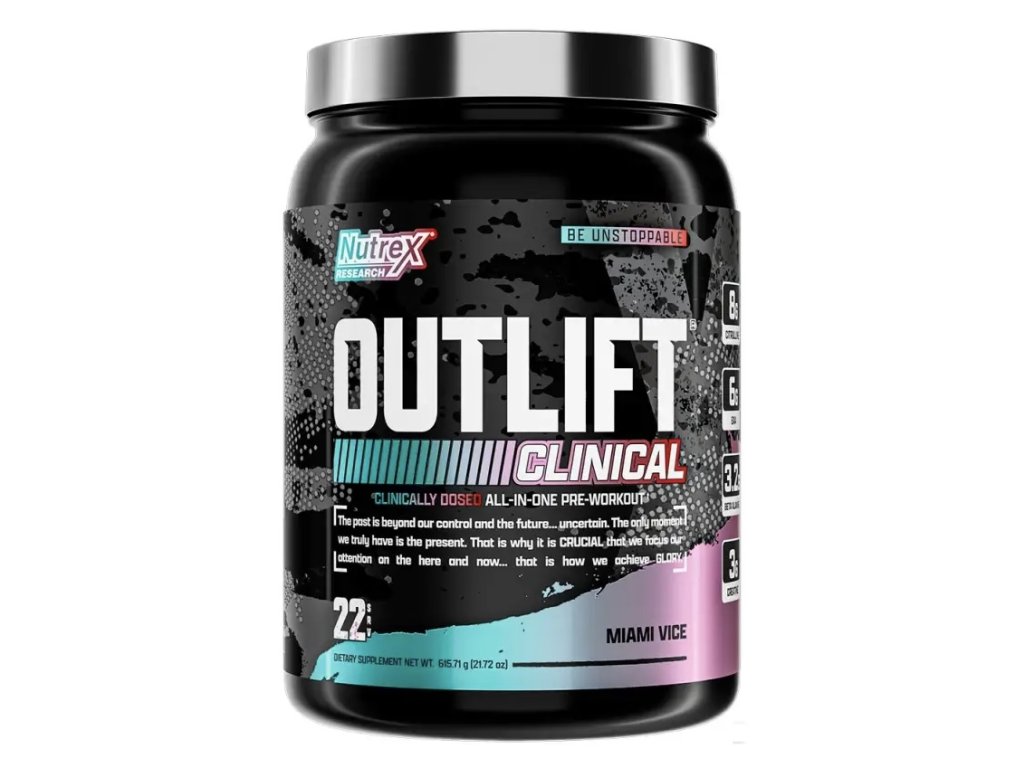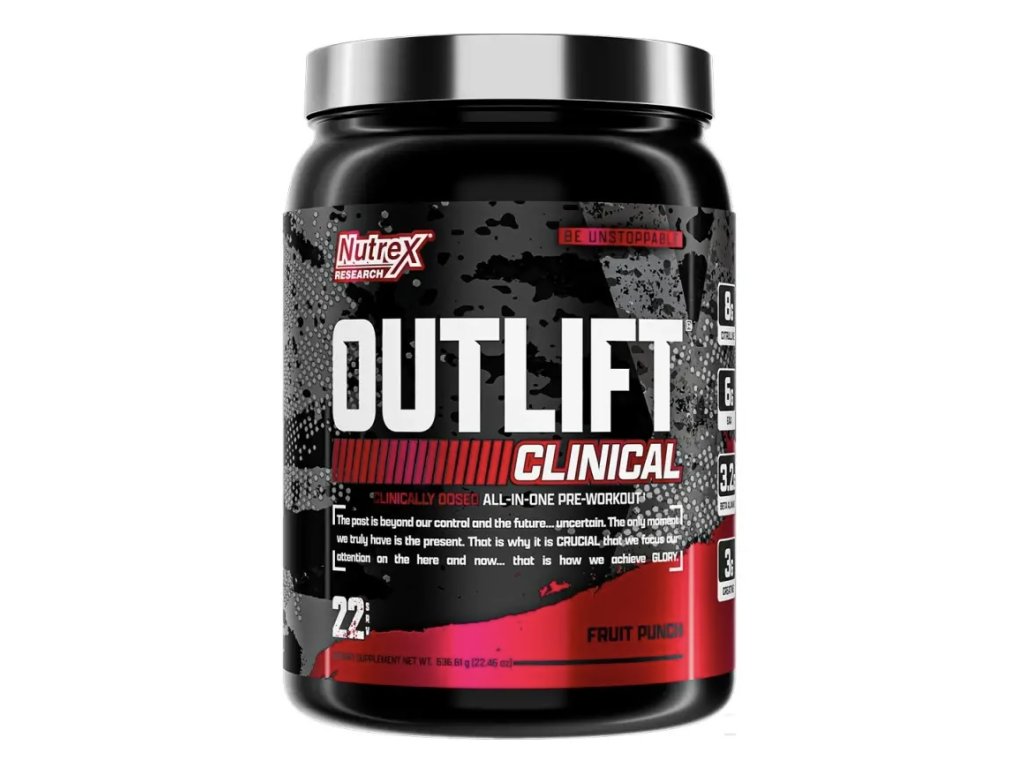 Nutrex Research - Outlift Clinical Edge 637 g – profesionálny predtréningový doplnok s klinicky overenými dávkami pre maximálny výkon, energiu, sústredenie a extrémny svalový pump. Obsahuje vysoké množstvo L-citrulínu, beta-alanínu, BCAA, kreatínu a silný stimulačný komplex.